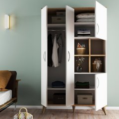Maxi 4 Kapaklı Askılıklı Raflı Çok Amaçlı Dolap Beyaz-Çam - GRD0103